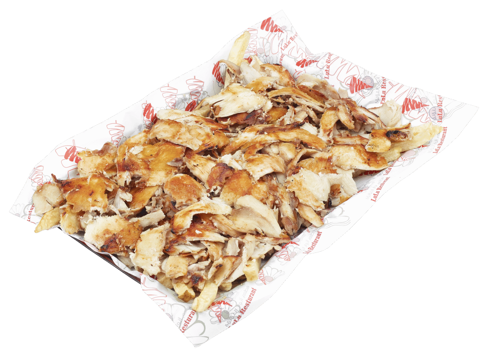 مكعبات البطاطس المقرمشة والمتبلة بتوابل حارة، تقدم مع قطع الشاورما الشهية لإضفاء نكهة غنية ومميزة. تعتبر وجبة متكاملة ولذيذة لمحبي النكهات الحارة واللحم المشوي.
